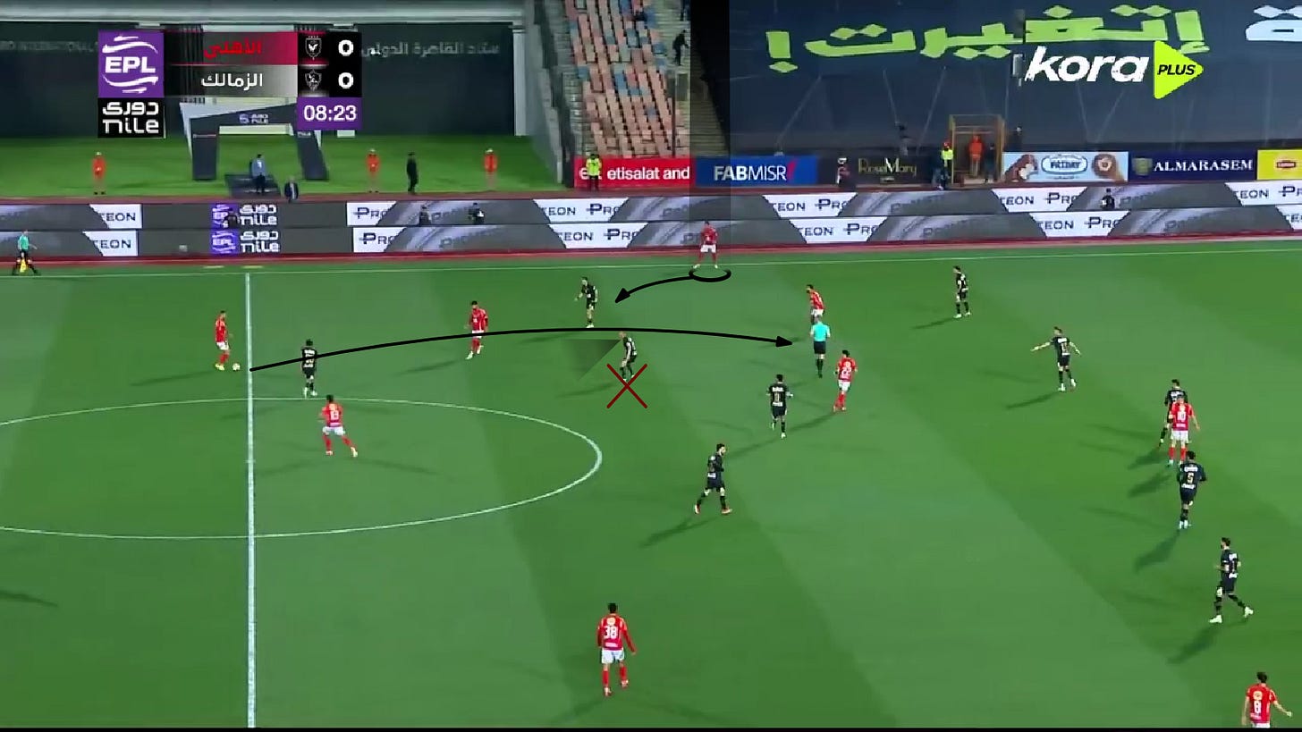 جملة أخري حاول النادي الأهلي تنفيذها مستغلا نمط الضغط للزمالك الذي سيتم شرحه تفصيلا لاحقا :